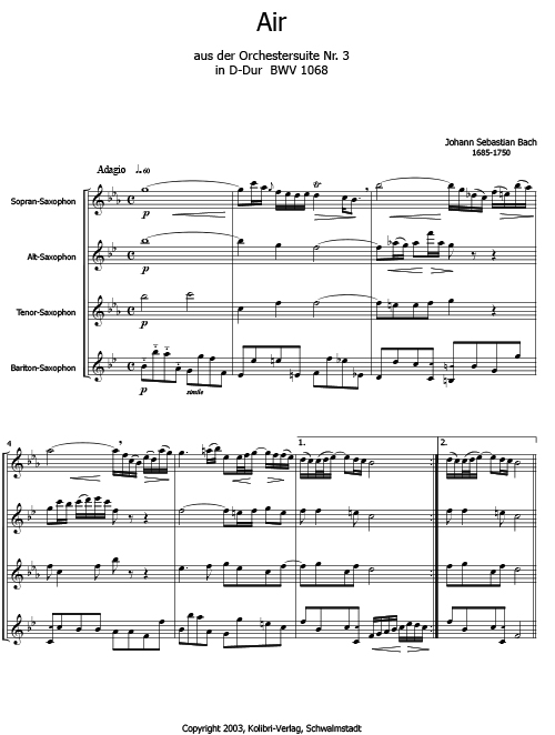 Originalgetreue Übertragung einer der schönsten und beliebtesten Kompositionen von Johann Sebastian Bach