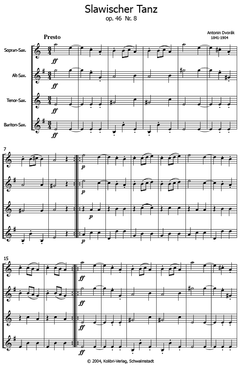 Dvoraks bekanntester Slawischer Tanz in einer hervorragenden Bearbeitung für Saxophonquartett!