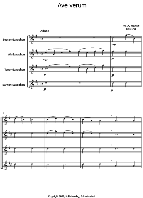 Mozarts berühmtester Chorsatz eignet sich auch idealfür das Saxophon-Quartett. Beliebtes Vortragsstück