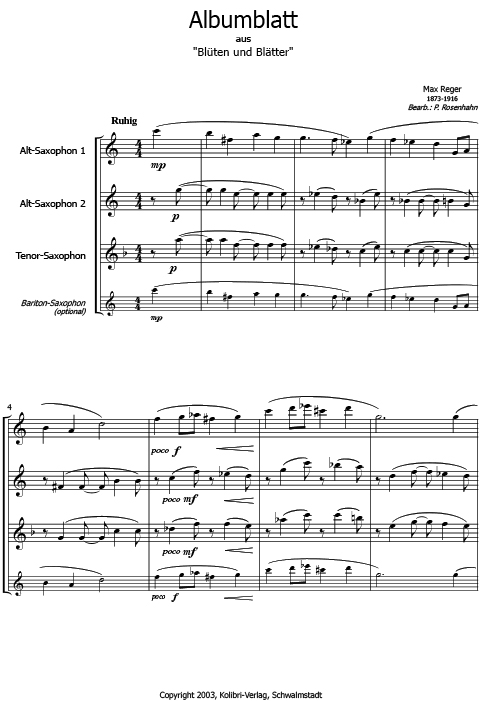 Sehr besinnlicher, wohlklingender und schlichter Satz – auch im Trio spielbar.Arrangement: Peter Rosenhahn