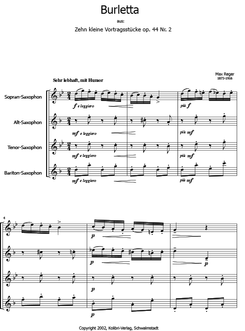 Kurzweilige, erfrischende Komposition.Auch in einer Ausgabe für Saxophon-Trio erhätlich.
