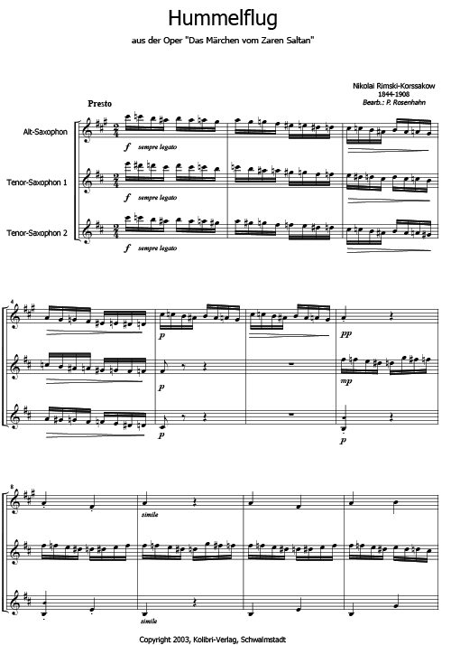 Eine weltbekannte Komposition als gelungene und spannende Herausforderungfür das fortgeschrittene Saxophon-Trio. Chromatische Läufe, die Spaß machen. Arrangement: Peter Rosenhahn